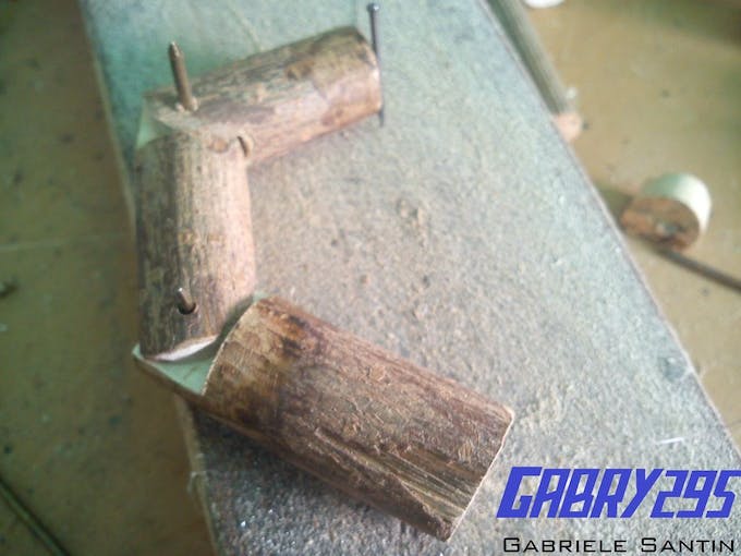 Empecé haciendo los dedos con corcho, para encontrar la estructura adecuada para los movimientos, luego lo hice con una rama.